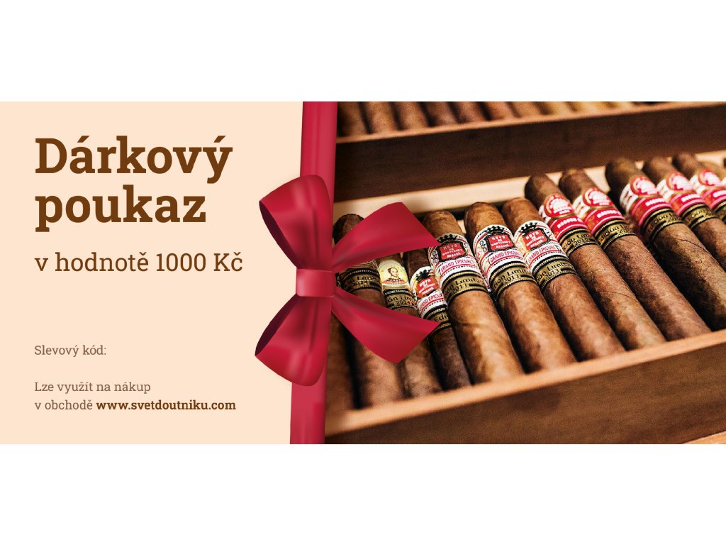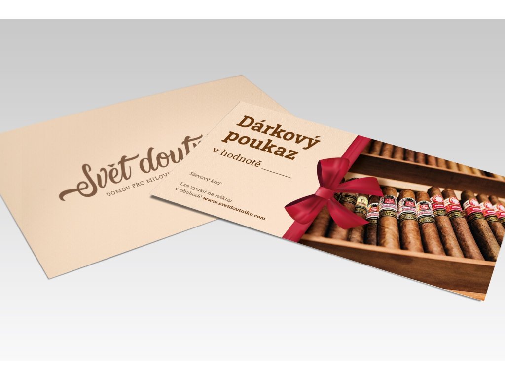 Nevíte co vybrat vašim blízkým a přitom jim chcete udělat radost? Vyberte jim dárkový poukaz Svět doutníků k nákupu Kvalitních doutníků, tabákových výrobků a doutníkového příslušenství. Vyberte si poukazy v hodnotě 500 až 5 000 Kč.
