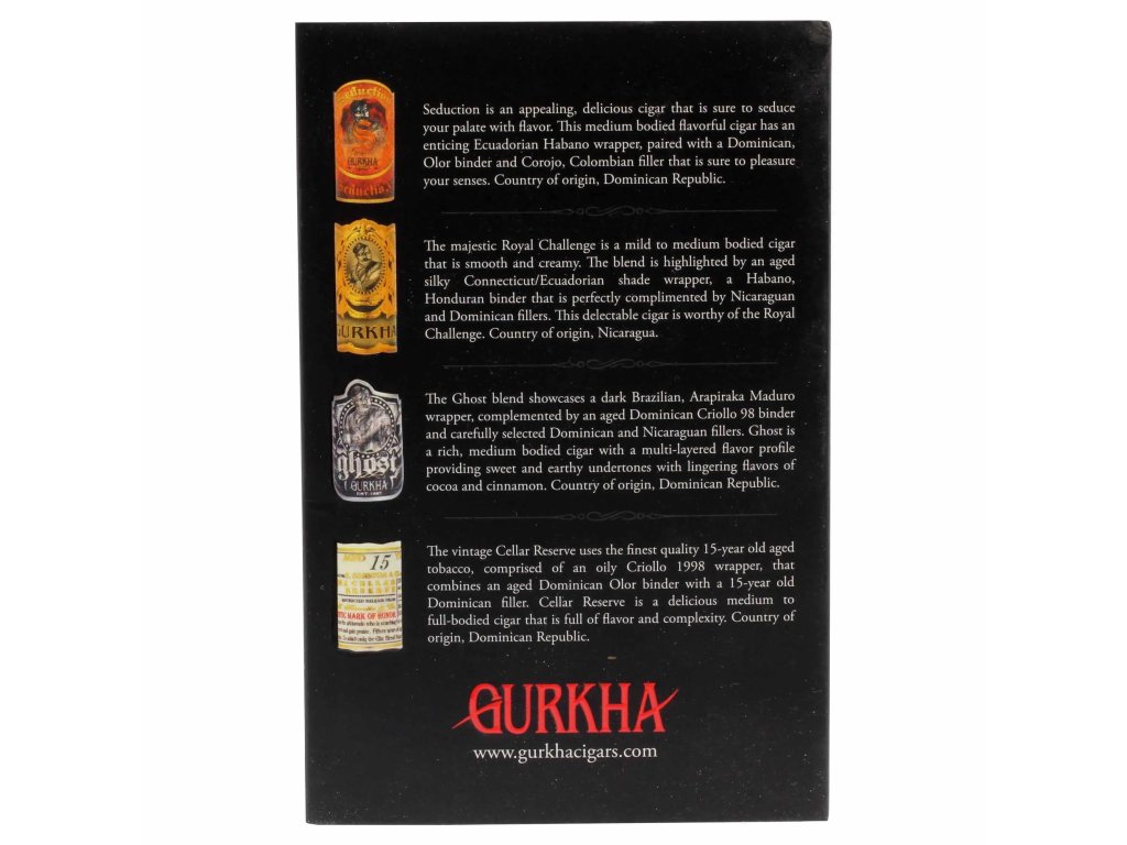 Gurkha je uznávaná značka doutníků pojmenovaná po statečných nepálských vojácích, kteří sloužili v britské armádě. Jejich doutníky jsou vyrobeny z nejlepších tabáků, pečlivě vybíraných a dlouhodobě zrálých, což jim dodává bohatou chuťovou paletu. Krabičky a prstýnky jsou navrženy jako umělecká díla a značka si udržuje vynikající pověst mezi náročnými zákazníky.
