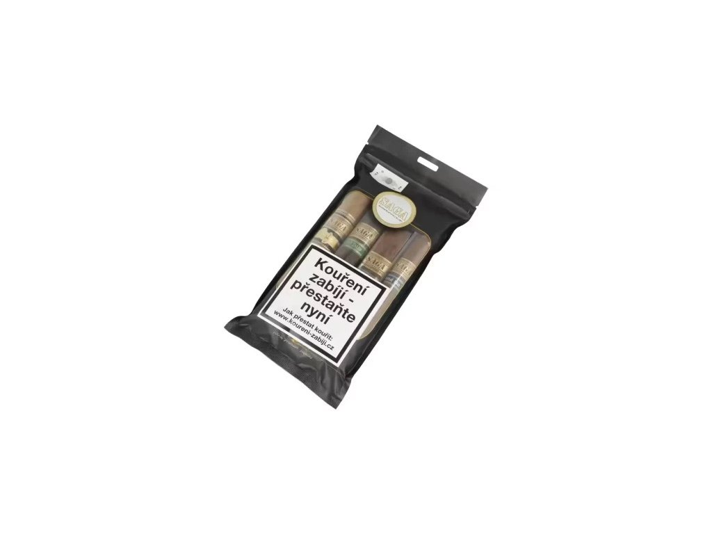 Saga Assortment Pack/4 je elegantní kolekce čtyř prémiových doutníků, které dokonale vystihují rozmanitost a kvalitu značky Saga. Každý doutník v setu přináší jiný zážitek – od jemných, krémových tónů až po plné, kořeněné a dřevité chutě, které uspokojí jak začátečníky, tak zkušené znalce. Tabák pochází z nejlepších oblastí Dominikánské republiky a je pečlivě vybírán pro dosažení harmonické chuti a dokonalého tahu. Tento sampler je ideální pro degustaci celé série nebo jako stylový dárek pro milovníka doutníků, který chce poznat pravou esenci značky Saga.