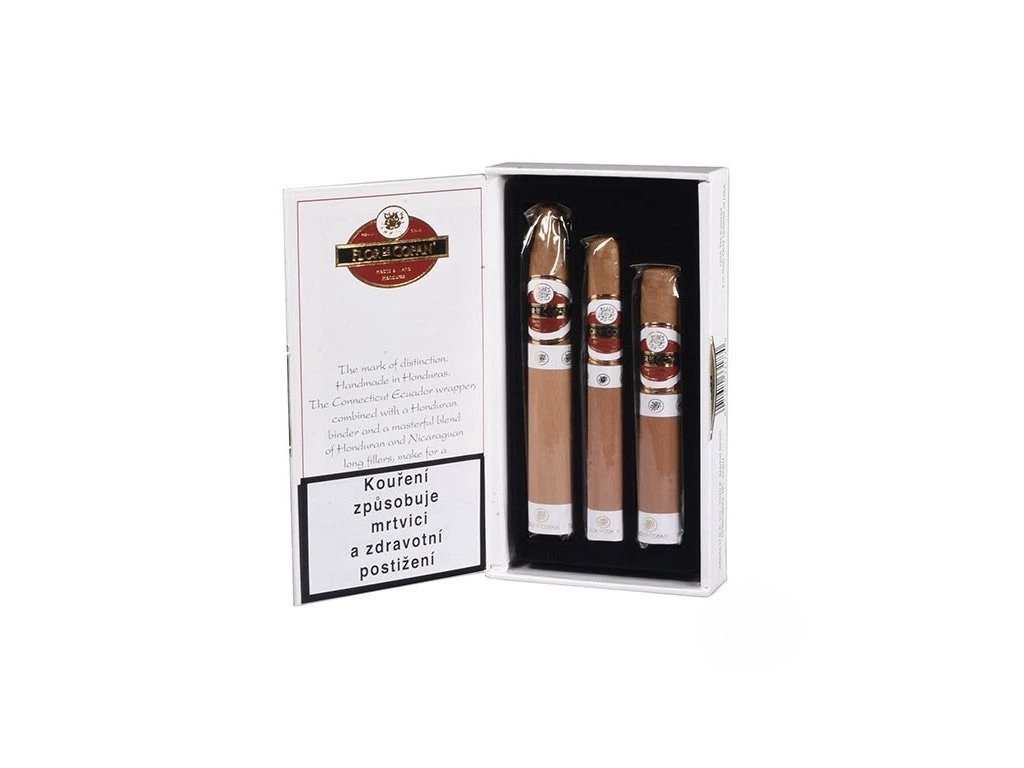 Flor de Copán Set vás provede do světa dlouholeté tradice a mistrovského řemesla výroby doutníků. Díky široké škále chutí a aroma, které nabízí, je tento set ideálním dárkem pro každou příležitost, ať už pro vášho blízkého nebo pro vás samotného. Oživte své smysly s touto lahodnou a elegantní dárkovou krabičkou Flor de Copán Set.