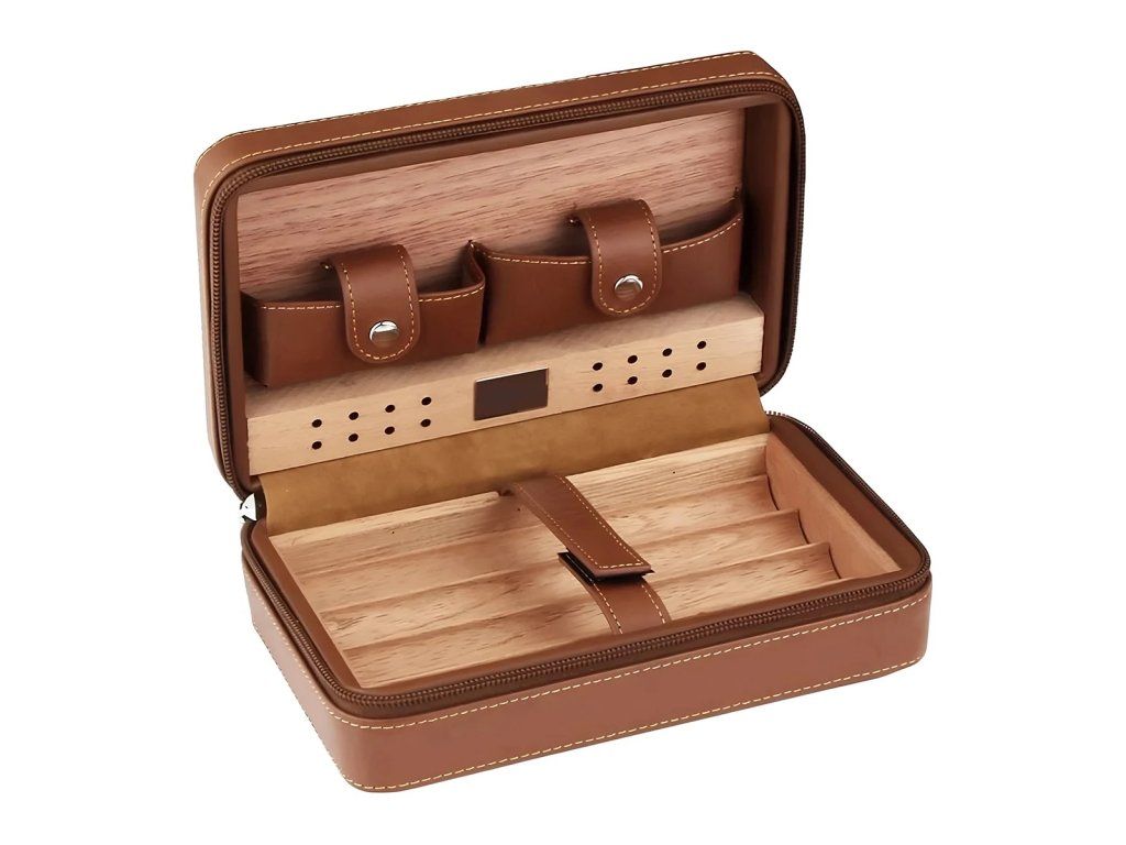 Humidor na doutníky Hannicook Han-329 je navržen pro bezpečné a dlouhodobé skladování doutníků při optimální vlhkosti. Kvalitní zpracování a pečlivě utěsněná konstrukce pomáhají udržovat stabilní mikroklima, které je klíčové pro zachování chuti a aroma. Interiér je uzpůsoben tak, aby poskytoval dostatek prostoru pro přehledné uložení doutníků a jejich ochranu před vysycháním. Elegantní design z něj dělá nejen praktický, ale i reprezentativní doplněk do interiéru, pracovny nebo kuřáckého koutku. Humidor je vhodný jak pro začínající, tak i zkušené milovníky doutníků, kteří hledají spolehlivé a stylové řešení. Díky své kombinaci funkčnosti a estetiky představuje také ideální dárek pro každého nadšence do doutníků.
