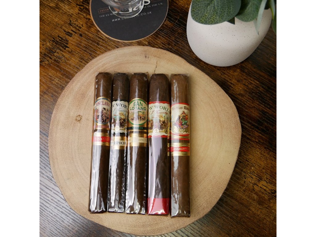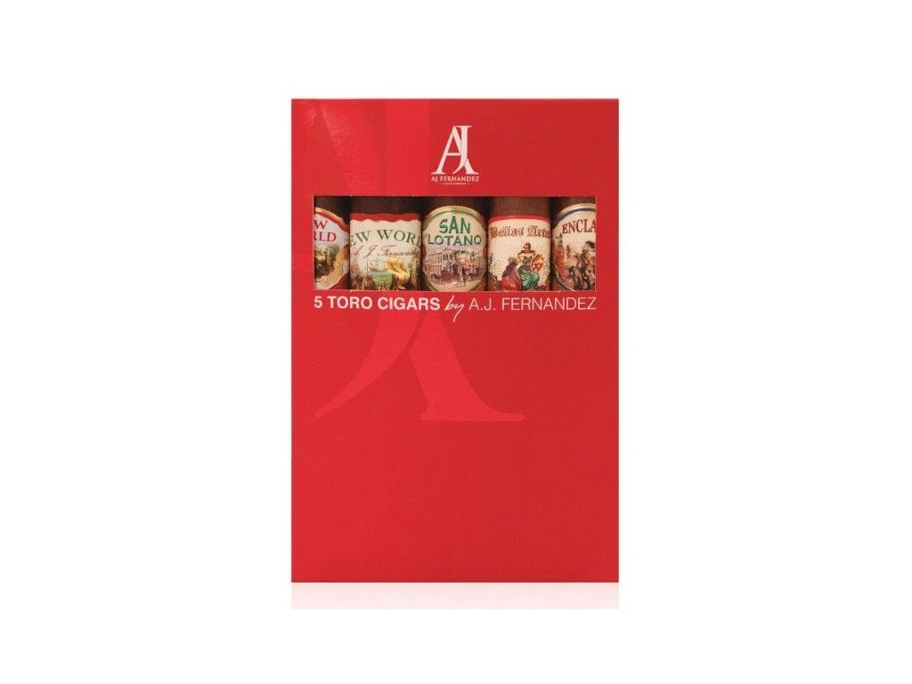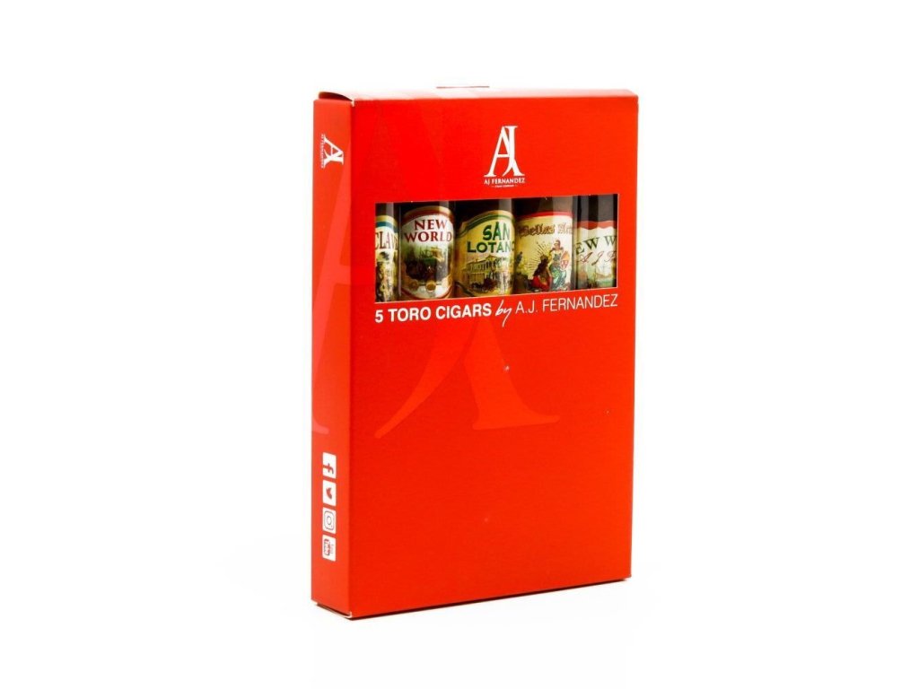 AJ Fernandez Toro Sampler je pečlivě sestavený výběr pěti prémiových doutníků ve formátu Toro – oblíbeném rozměru pro ty, kdo si chtějí užít delší a plnější doutníkový zážitek. Každý doutník pochází z různých sérií slavného tvůrce AJ Fernandeze, známého svou precizností, komplexními směsmi a smyslem pro detail. Tato kolekce nabízí pestrou paletu chutí – od kořeněných a zemitých tónů až po krémové, kakaové a lehce nasládlé nuance.