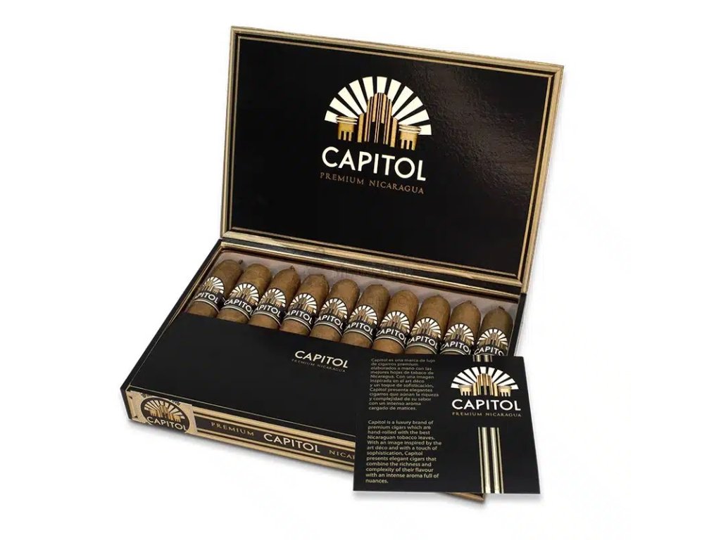 Značka Capitol je symbolem klasické elegance a poctivého řemeslného zpracování v oblasti doutníků. Doutníky Capitol se vyznačují vyváženým charakterem, kultivovaným chuťovým projevem a důrazem na konzistentní kvalitu. Každý doutník je navržen tak, aby nabídl harmonický zážitek s jemnými, uhlazenými tóny, které působí čistě a nadčasově. Capitol představuje spolehlivou volbu pro ty, kteří hledají tradiční styl, stabilní zpracování a decentní, nenápadný luxus.