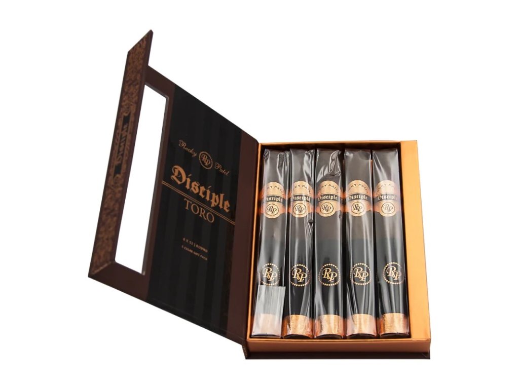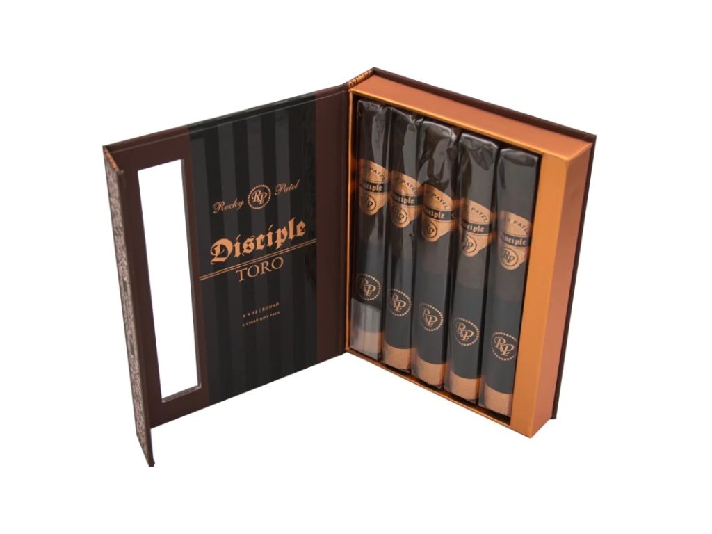 Rocky Patel Disciple Toro Sampler /5 představuje pečlivě sestavený degustační výběr z řady Disciple, která je považována za jednu z nejodvážnějších a nejelegantnějších v portfoliu značky. Sampler obsahuje pět kusů ve formátu Toro, jež v sobě spojují důraz na plnou sílu, precizní konstrukci a prvotřídní tabákové listy.Doutníky Disciple jsou zabaleny do tmavého krycího listu San Andrés z Mexika, pod nímž se ukrývá nikaragujský vázací list a výběrový dlouhý plnivo taktéž z Nikaraguy. Chuťový profil je bohatý a vrstevnatý – s tóny hořké čokolády, černého pepře, tmavého ovoce, dubového dřeva a jemného podtónu sladké zeminy. V průběhu kouření se chutě elegantně vyvíjejí, což z něj činí výjimečný zážitek od prvního potažení až po poslední třetinu.Sampler Disciple Toro je ideální pro večerní chvíle s kvalitním bourbonem nebo stařeným rumem, a potěší všechny, kteří hledají výrazný a zároveň vyvážený doutník. Skvělý dárek pro pokročilé kuřáky i skvělý způsob, jak se seznámit s charakterem celé řady Disciple.
