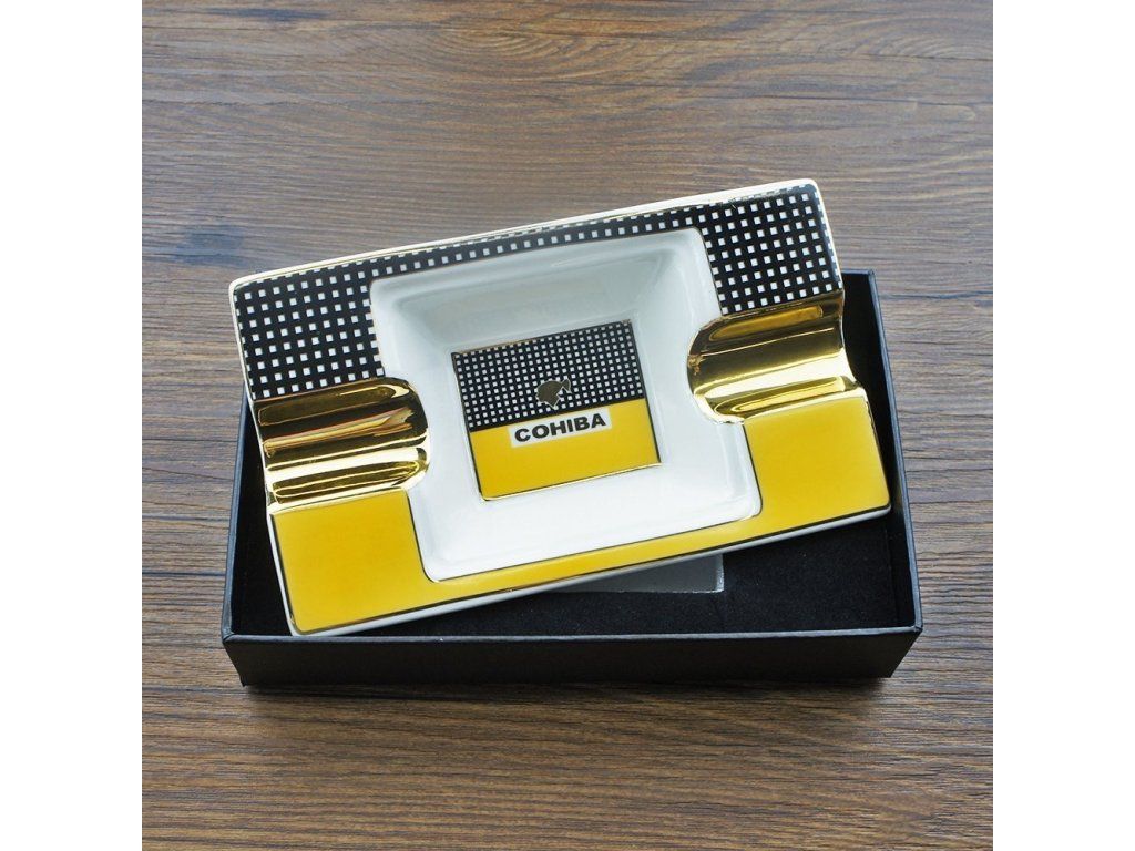 Cohiba Popelník 2D Keramický představuje elegantní doplněk pro milovníky doutníků, kteří si chtějí vychutnat kouření ve dvou nebo mít více prostoru při odkládání. Je vyroben z kvalitní keramiky, která zajišťuje vysokou odolnost, snadnou údržbu a dlouhou životnost. Díky dvěma odkládacím drážkám nabízí dostatek prostoru pro bezpečné uložení doutníků bez rizika poškození. Design vychází z ikonické estetiky značky Cohiba a dodává prostoru luxusní a reprezentativní vzhled. Stabilní konstrukce zajišťuje pevné usazení na stole, ať už doma, na terase nebo v lounge prostředí. Tento popelník je ideální jak pro každodenní použití, tak jako stylový dárek pro náročné kuřáky.