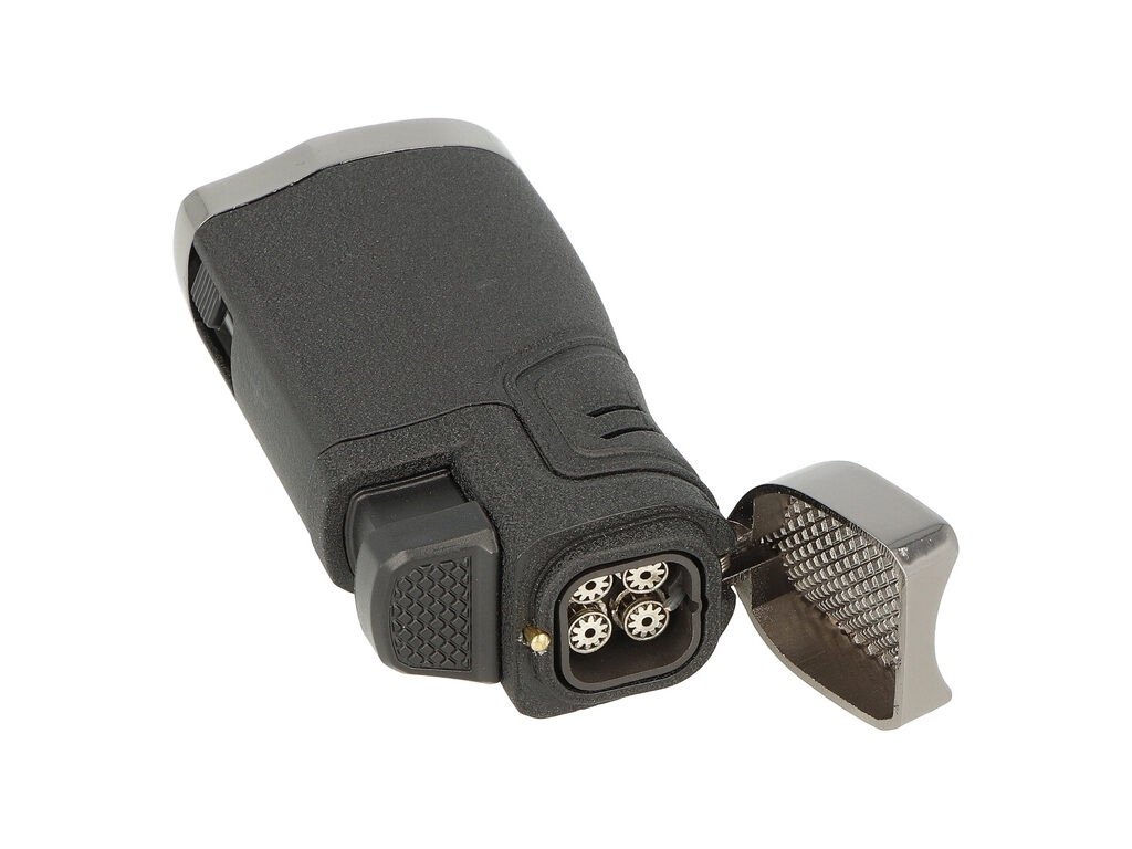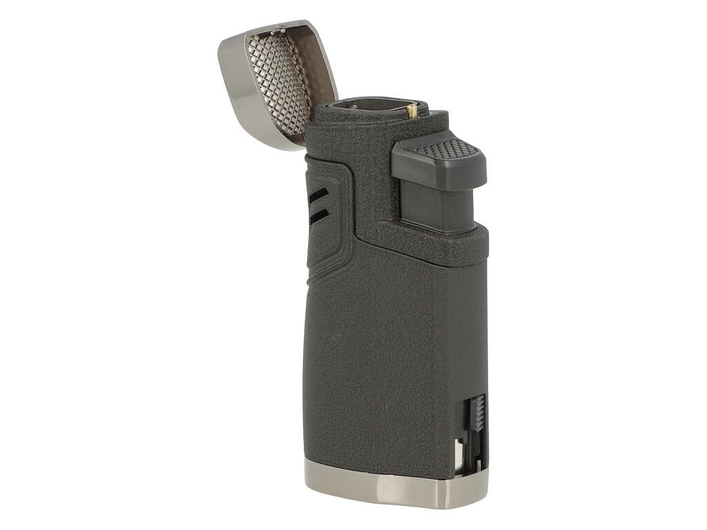Doutníkový zapalovač Eurojet Stine Black je stylový doplněk pro každého milovníka doutníků. Tento zapalovač nabízí výkonný tryskový plamen, který zajišťuje snadné a rovnoměrné zapálení doutníku i za větrných podmínek. Černý design v kombinaci s moderním provedením dodává zapalovači sofistikovaný vzhled. Díky kompaktním rozměrům je ideální na cesty, zatímco jeho spolehlivost oceníte při každodenním použití. Eurojet Stine Black je nejen funkční, ale také elegantní volba pro ty, kteří hledají kvalitní zapalovač s dlouhou životností.