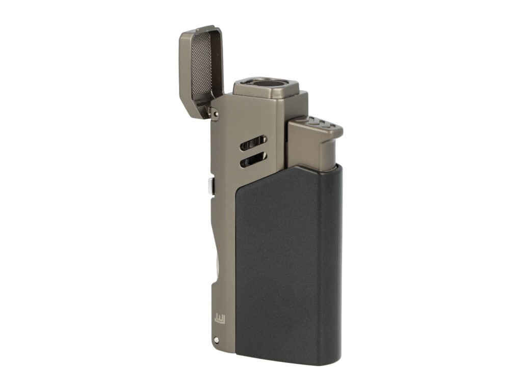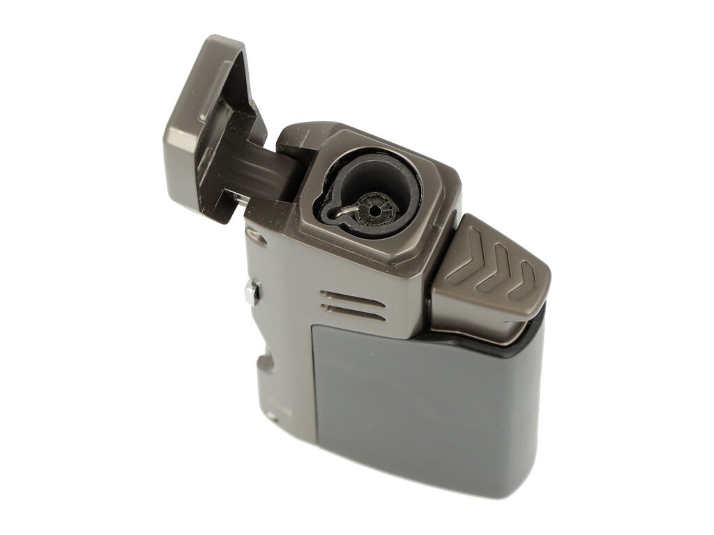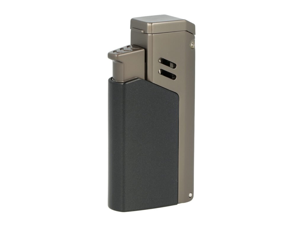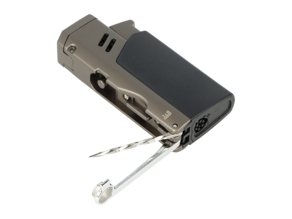 Doutníkový zapalovač Winjet Cigar 1xJet s integrovaným doutníkovým příslušenstvím. Kovový tryskový zapalovač na doutníky je v pololesklém antracitovém provedení. Po odklopení horního krytu a stisknutí tlačítka na právě straně dojde k zapálení jedné trysky která vyvine dostatečně silný plamen pro zapálení Vašeho doutníku. Na levé straně v dolní části najdeme vyklápěcí doutníkové příslušenství a to vyštípávač a jehlu (vrták). Ve spodní části je umístěn plynový plnící ventil a regulace intenzity plamene. Zapalovač je dodávaný v dárkové krabičce.